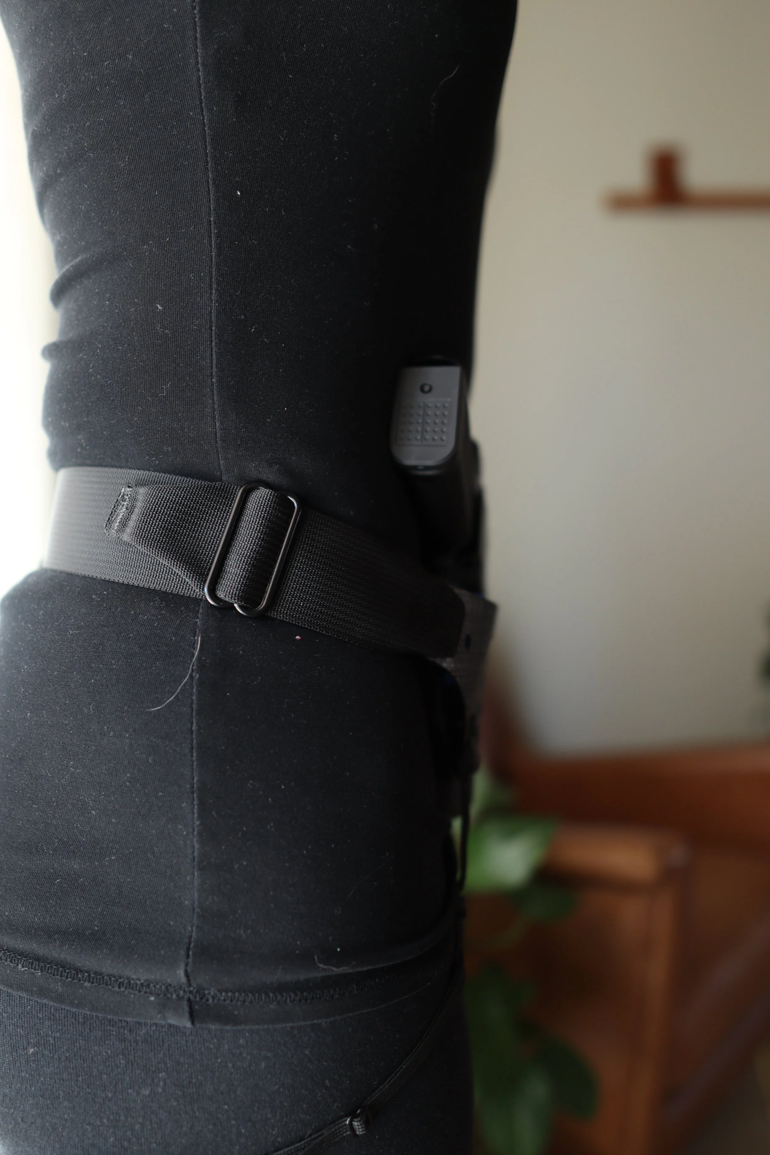 After several months of attaching a holster to my jeans I started to notice the flaws in that carry method. Not only was it insecure, and unreliably concealed, but it didn’t allow me to carry in things like skirts or leggings. I had tried things like the Sticky Holster, and bellybands, but the poor design and safety issues caused me to continue my search for a carry method that allowed me to carry safely in a kydex holster, while also allowing me to carry independently from my pants.